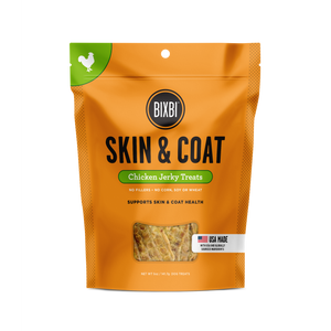 BIXBI Skin & Coat Jerky Treats are made with tasty chicken and loaded with naturally enriching whole foods that help support shiny, full-bodied coats and healthy skin. These jerky treats provide protein-rich nutrition that will have your dog looking like every day is their perfect hair day.