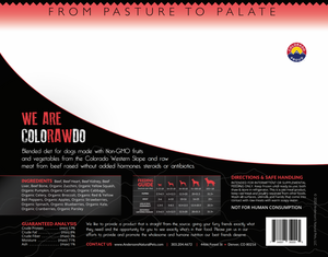 From pasture to palate, Anderson’s Natural Pet Food sources locally and exclusively from Kinikin Ranch, in the heart of Colorado’s mountains. Because of this, they're able to feature some of the finest pasture raised beef, bison, elk, lamb, and pork from animals raised hormone, antibiotic, and steroid free. Their recipes include all organic produce and no synthetics to ensure a nutritious meal. Anderson's roots are grounded in humane practicing farms, and the life that flourishes within regenerative farming in Colorado.