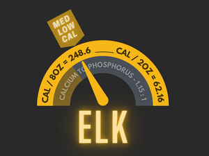Elk, elk heart, elk kidney, elk liver, organic zucchini, organic yellow squash, organic pumpkin, organic carrots, organic cabbage, organic celery, organic broccoli, organic red and yellow bell peppers, organic apples, organic strawberries, organic spinach, organic blueberries, organic kale, organic cranberries, elk bone, organic parsley.