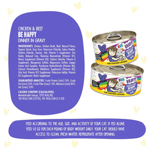 Once your kitty gets a taste of BFF’s OMG Be Happy! Chicken & Beef in Gravy Wet Canned Cat Food, she’ll be purring for more! This complete meal is crafted with real, cage-free chicken first and beef in a lip-smacking gravy for healthy hydration. Not only is this grain-free recipe made with the quality ingredients you want your feline to have, but it’s also made without those not-so desirable ingredients like gluten and carrageenan! Your feline friend is sure to lick her dish clean once she gets a taste of this delectable wet cat food!