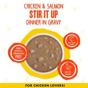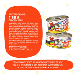Once your kitty gets a taste of BFF’s OMG Stir It Up! Chicken & Salmon in Gravy Wet Canned Cat Food, she’ll be purring for more! This complete meal is crafted with real, cage-free chicken first and salmon in a lip-smacking gravy for healthy hydration. Not only is this grain-free recipe made with the quality ingredients you want your feline to have, but it’s also made without those not-so desirable ingredients like gluten and carrageenan! Your feline friend is sure to lick her dish clean once she gets a taste of this delectable wet cat food!