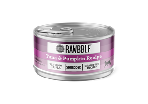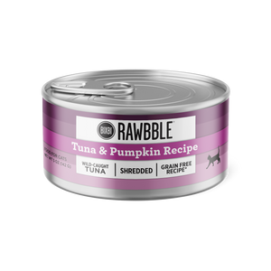 Rawbble Wet Food for Cats protein-rich Shredded Tuna & Pumpkin Recipe is perfect for cats who like a little more moisture in their meal. Responsibly sourced tuna is combined with ingredients like pumpkin for digestive health. All Rawbble recipes are free of meat meals and carrageenan.
