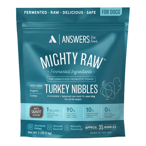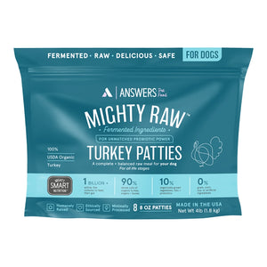 At the heart of your dog's vitality is a healthy gut, and our Mighty Raw™ recipe is crafted to deliver exactly that! With a powerful blend of fermented and whole food ingredients, our one-of-a-kind recipe is full of probiotic power to support gut health and boost nutrient absorption. Our Mighty Raw Turkey Recipe is packed with 90% premium animal protein, featuring turkey meat, turkey gizzards, turkey heart, turkey liver and ground turkey bone as the first five ingredients. This powerful lineup, combined with fermented vegetables, fermented raw whey, and other natural, wholefood ingredients, provides all the nutrition your dog needs for a strong body, healthy gut, and happy life.