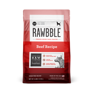 Rawbble’s newest freeze-dried raw-coated, limited-ingredient recipe is made with ranch-raised Beef, prebiotics, and natural sources of fiber to support digestion. Every batch uses real beef instead of processed beef meal or meat meal to deliver drool-worthy flavor and nutrition.