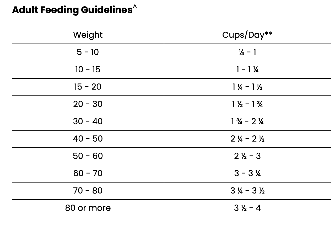 ME = 3,674 kcal/kg, 418 kcal/cup