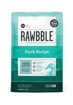 BIXBI Rawbble Duck Recipe is the perfect solution for the picky pup. Freeze-Dried coated for a boost of raw flavor, this recipe combines duck and whole food ingredients without commonly found by-products like poultry meals. Rawbble is tested for high digestibility, ensuring your pup gets the most nutrition out of their bowl.