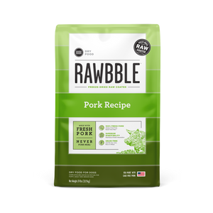 BIXBI Rawbble Pork Recipe is the perfect solution for the picky pup. Freeze-Dried coated for a boost of raw flavor, this recipe combines pork and whole food ingredients without commonly found by-products like pork meal. Rawbble is tested for high digestibility, ensuring your pup gets the most nutrition out of their bowl.