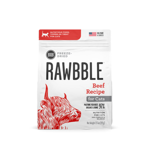 A raw diet for your cat doesn’t need to be hard! BIXBI Rawbble Freeze-Dried Food for Cats Beef Recipe combines the whole-animal nutrients of raw food with the convenience of kibble. With 97% beef, organs, and bone to give your cat a healthy source of protein, Rawbble uses freeze-dried technology to lock more naturally sourced essential nutrients into every bite. Complete and balanced to serve as a stand-alone food or as an irresistible topper or treat.