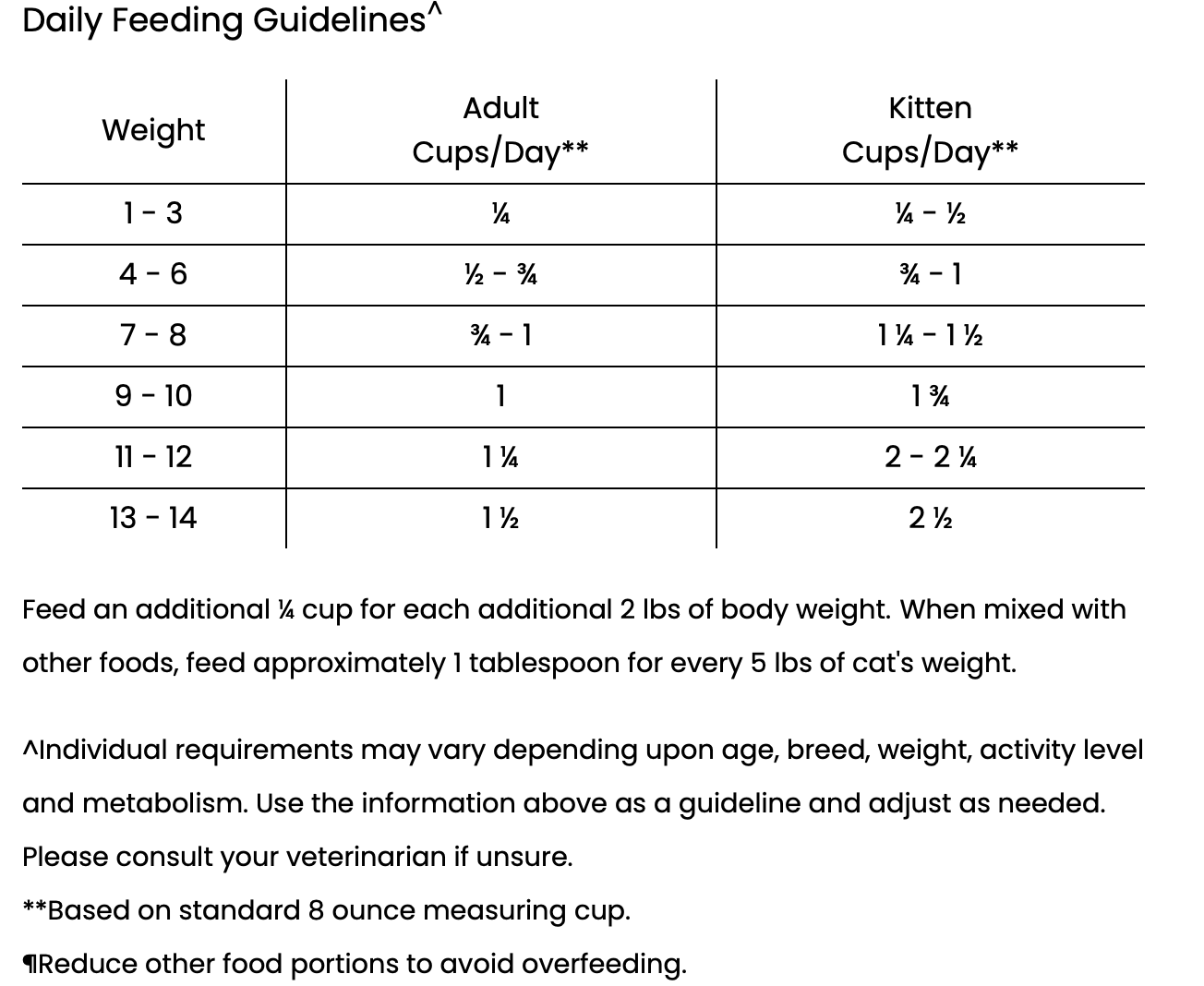 ME = 4,661 kcal/kg, 202 kcal/cup