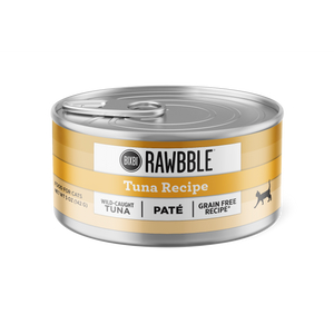 Rawbble Wet Food for Cats protein-rich Tuna Paté Recipe is perfect for cats who like a little more moisture in their meal. Responsibly sourced tuna is combined with ingredients for high moisture and digestive health. All Rawbble recipes are free of meat meals and carrageenan.