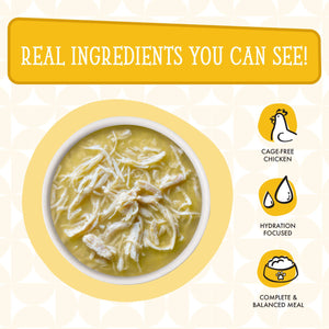 Chicken (Boneless, Skinless Breast), Chicken Broth, Pumpkin, Tapioca Starch, Sunflower Seed Oil, Calcium Lactate, Tricalcium Phosphate, Xanthan Gum, Choline Chloride, Taurine, Zinc Sulfate, Vitamin E Supplement, Nicotinic Acid (Vitamin B3), Ferrous Sulfate, Manganese Proteinate, Thiamine Mononitrate (Vitamin B1), Calcium Pantothenate, Vitamin A Supplement, Riboflavin Supplement (Vitamin B2), Pyridoxine Hydrochloride (Vitamin B6), Vitamin D3 Supplement, Folic Acid, Copper Sulfate, Potassium Iodide, Biotin, Sodium Selenite, Vitamin B12 Supplement.