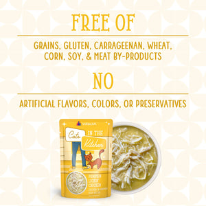 Your kitty loves hanging out in the kitchen, so give him the home-cooked flavor he craves with the Weruva Cats in the Kitchen Pumpkin Lickin' Chicken in Pumpkin Soup Grain-Free Cat Food Pouches. Made with lean chicken and wholesome pumpkin as the top ingredients, every bite is loaded with the meat your little carnivore craves, and all the protein he needs for healthy muscles. Since it’s formulated with a perfectly-balanced blend of vitamins, minerals and heart-healthy taurine, every easy-open pouch is actually a complete meal—on its own or as a tasty kibble topper. So tear one open, serve up and bring on all that quality time in the kitchen!