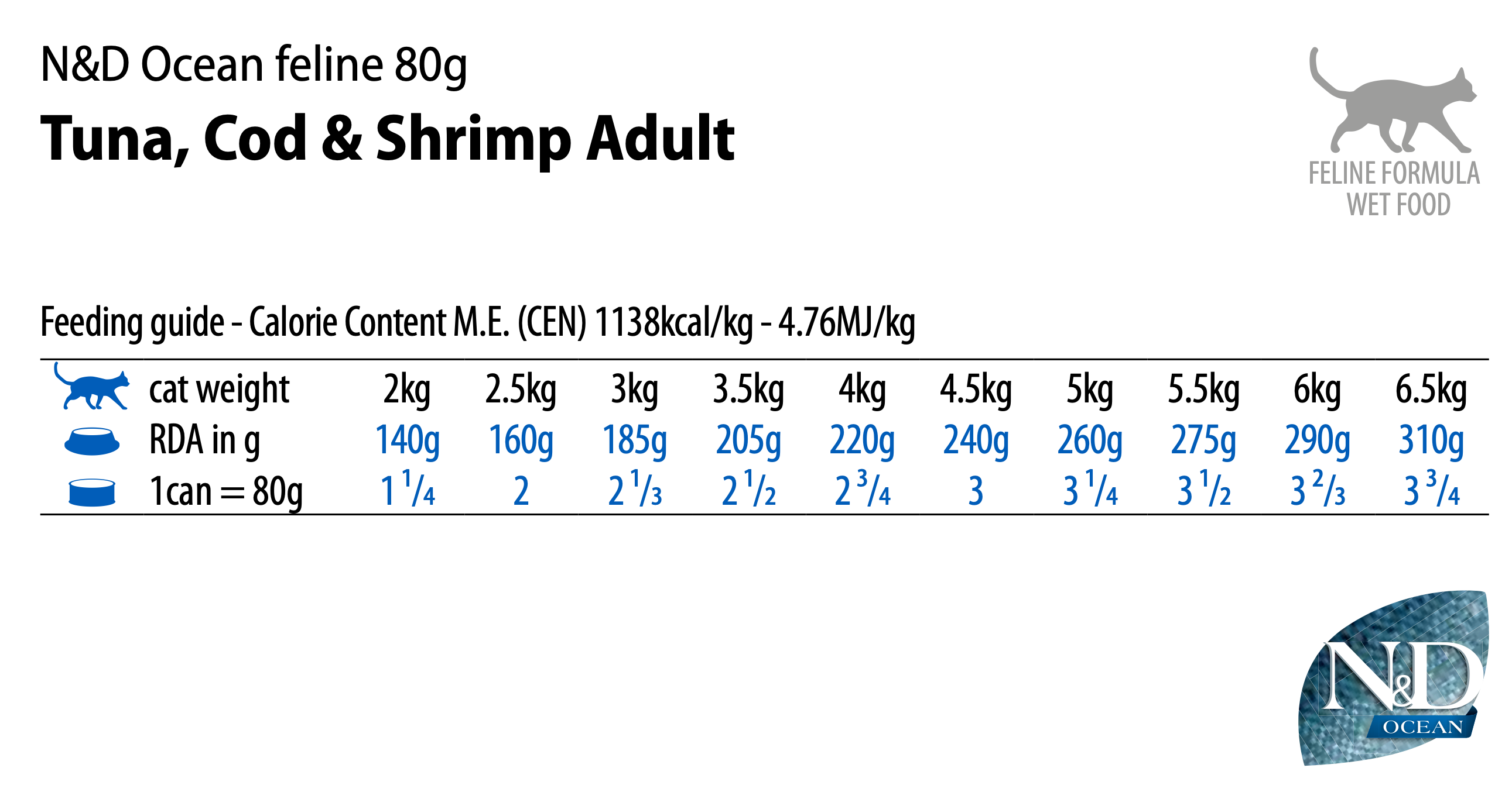Nourish your cat with N&D Ocean, rich in seafood protein and omega-3 fatty acids for vitality.