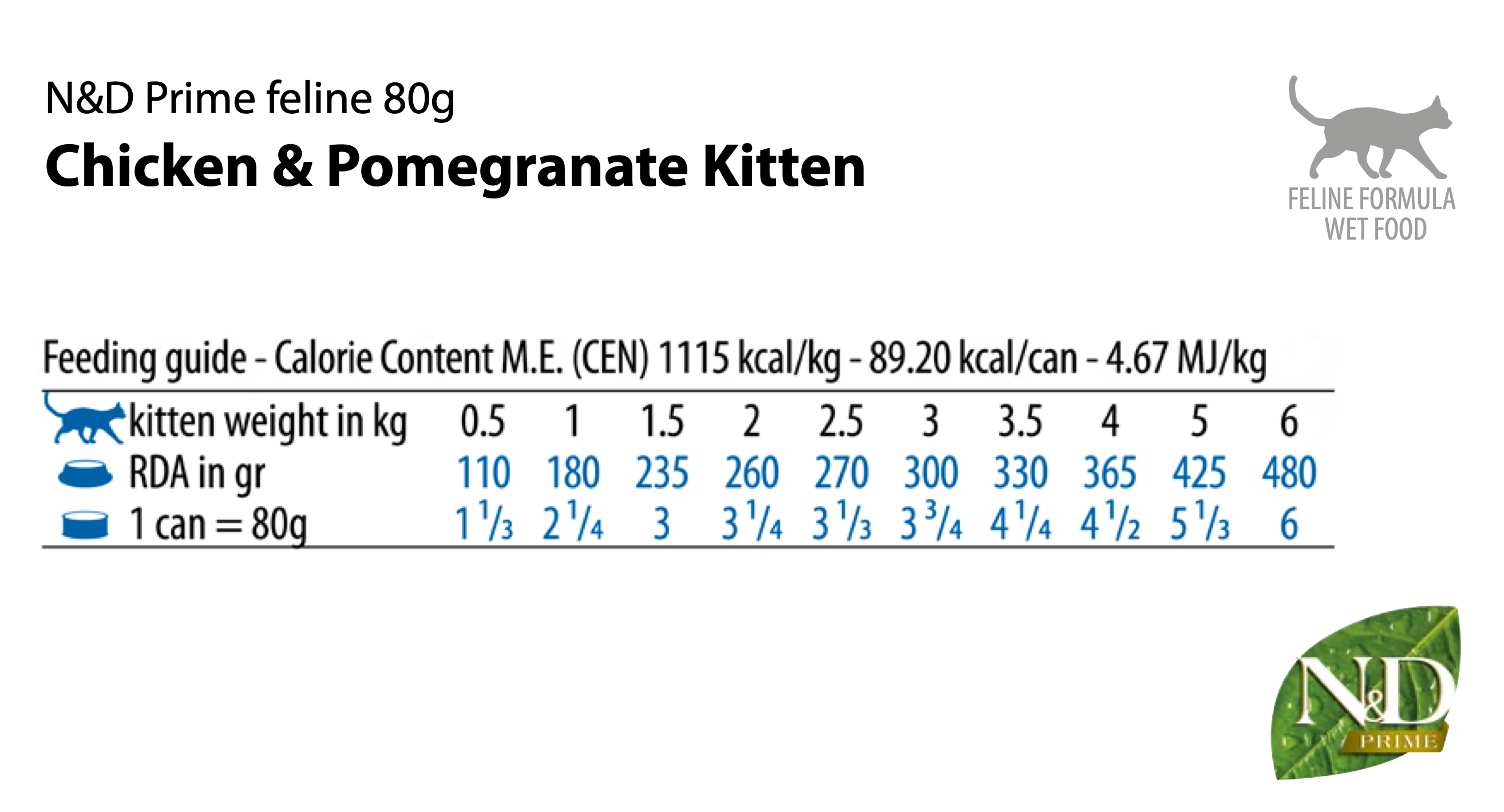 Calorie Content Calculated ME: 1035 kcal/kg – 72.45 kcal/can
