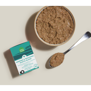 Boost their bowl with a savory blend of Ocean Wise recommended wild-caught herring, mackerel, and non-GMO veggies – all human-grade ingredients kettle-cooked to perfection. Mix this juicy rustic blend with your cat's meal or serve alone as a complete and balanced diet.