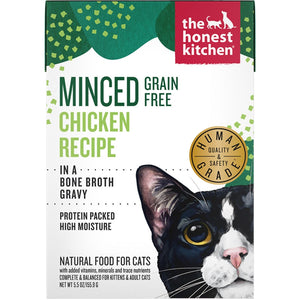 Give your kitty the nutrition she needs with The Honest Kitchen Grain Free Minced Chicken in Bone Broth Gravy Wet Cat Food! This grain- and filler-free recipe is purr-pared with 100% human-grade cage-free chicken in a savory bone broth gravy to maintain appropriate nutrients, protein levels and crave-worthy taste. Even the most finicky feline will me-wow at the irresistible taste, and you can rest easy knowing you’re giving her a fur-esh, high-quality meal!