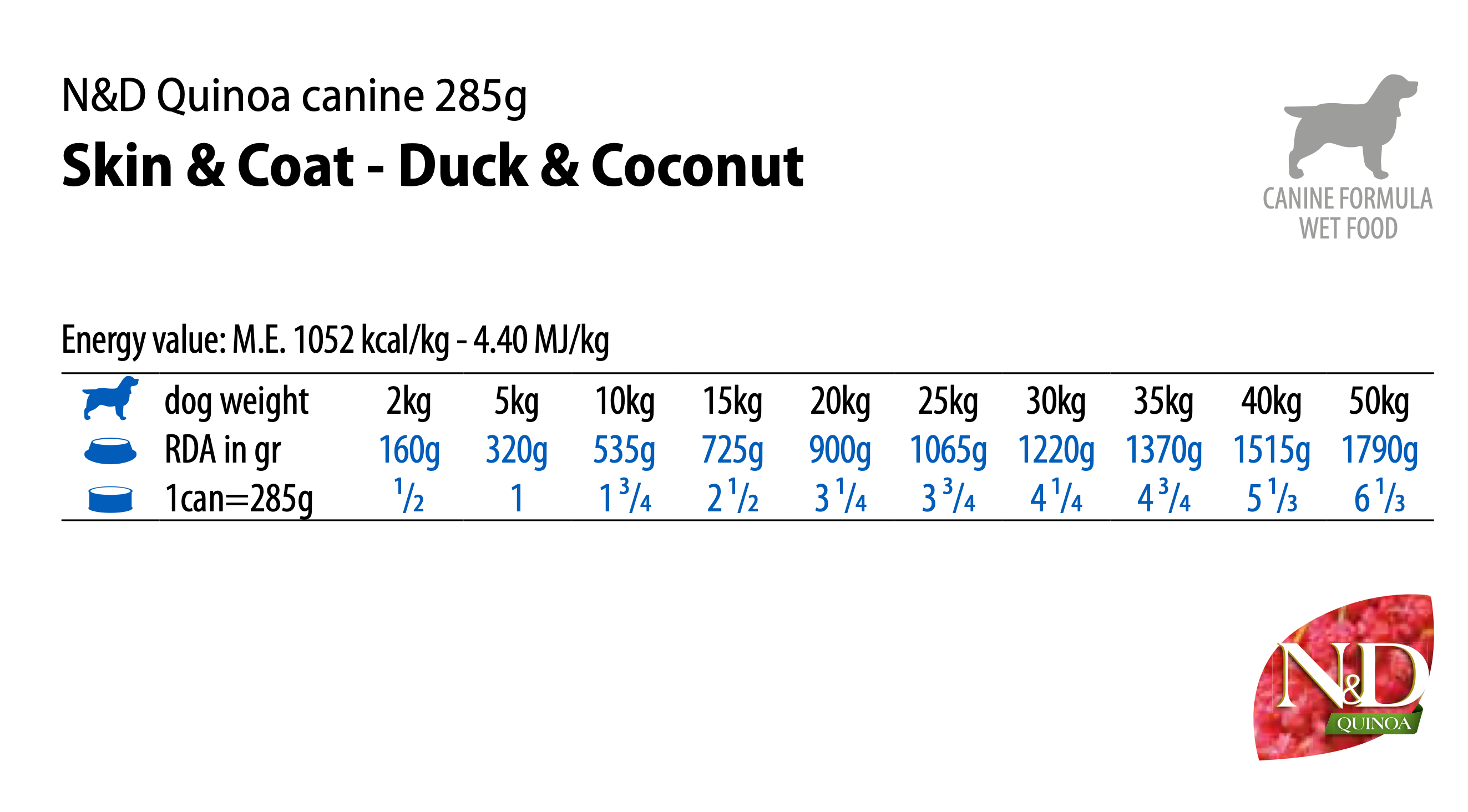 Unlock the power of N&D Quinoa Skin & Coat, the ultimate food sensitivity diet. Scientifically formulated for dogs suffering from allergies, intolerances, itching, or hot spots while ensuring optimal nutrition and satisfaction.