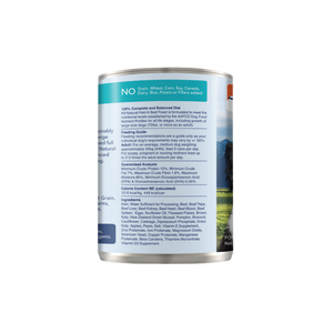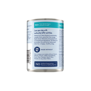Made with sustainably caught Hoki and grass-fed, free-range Beef, our canned Hoki & Beef Feast assists brain and eye development; making it an especially great diet for young dogs.