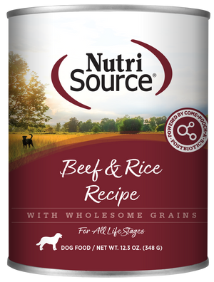 NutriSource® canned pet foods feature meat rich, protein dense recipes.