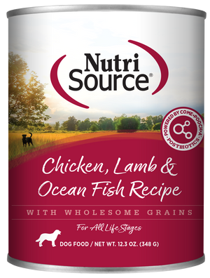 NutriSource® canned pet foods feature meat rich, protein dense recipes.