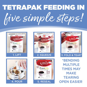 Adjust the amount of food you serve based on the age, size and activity level of your dog. Container should be shaken before opening. Food should be fed at room temperature. Promptly refrigerate the unused portion. Fresh water should be available at all times.