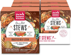 Your canine companion deserves the best and with human-grade whole foods, there’s nothing better than The Honest Kitchen One Pot Stews Roasted Beef Stew Wet Dog Food! This chunky, savory stew contains ranch-raised beef, kale, sweet potatoes, carrots, and rosemary. Mix it in with your pup’s regular breakfast, lunch, or dinner—or serve it as a complete meal. This quality, balanced meal will really get your furry friend’s mouth watering!