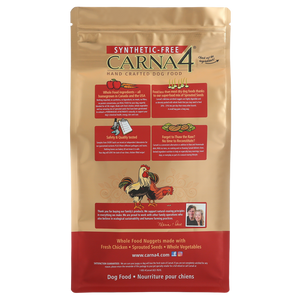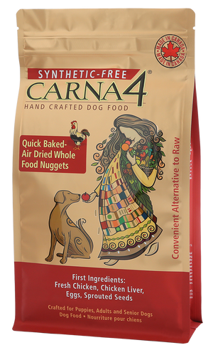 While it may look like ordinary kibble, Carna4 is anything but. Packed with lots of fresh meats, wild-caught salmon, eggs, whole produce, and a potent mix of certified organic sprouted seeds, it offers the nutritional power of real food in a convenient, ready-to-serve form. Sprouted seeds are gently germinated to unlock billions of probiotics and a rich source of natural nutrients that support gut health, energy, skin, and coat. Thanks to Carna4’s unique quick-bake and air-drying process, these vital nutrients are carefully preserved.