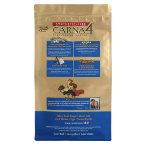Carna4's foods are full of species appropriate ingredients like 100% fresh meat, (not things like chicken meal or by-products) liver, eggs, wild-caught Atlantic salmon (not fish meal) and whole produce. Their certified organic sprouted seeds provide billions of probiotics and enzymes, as well as a vast range of bioavailable nutrients.