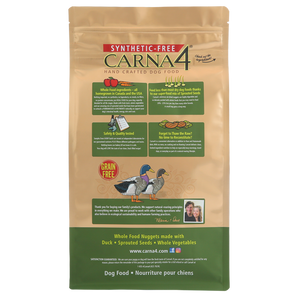 While it may look like ordinary kibble, Carna4 is anything but. Packed with lots of fresh meats, wild-caught salmon, eggs, whole produce, and a potent mix of certified organic sprouted seeds, it offers the nutritional power of real food in a convenient, ready-to-serve form. Sprouted seeds are gently germinated to unlock billions of probiotics and a rich source of natural nutrients that support gut health, energy, skin, and coat. Thanks to Carna4’s unique quick-bake and air-drying process, these vital nutrients are carefully preserved.