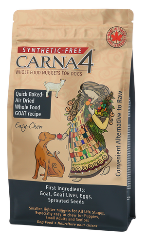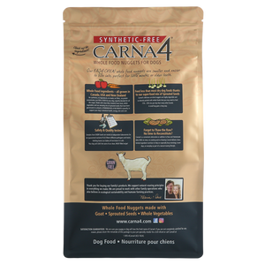 While it may look like ordinary kibble, Carna4 is anything but. Packed with lots of fresh meats, wild-caught salmon, eggs, whole produce, and a potent mix of certified organic sprouted seeds, it offers the nutritional power of real food in a convenient, ready-to-serve form. Sprouted seeds are gently germinated to unlock billions of probiotics and a rich source of natural nutrients that support gut health, energy, skin, and coat. Thanks to Carna4’s unique quick-bake and air-drying process, these vital nutrients are carefully preserved.