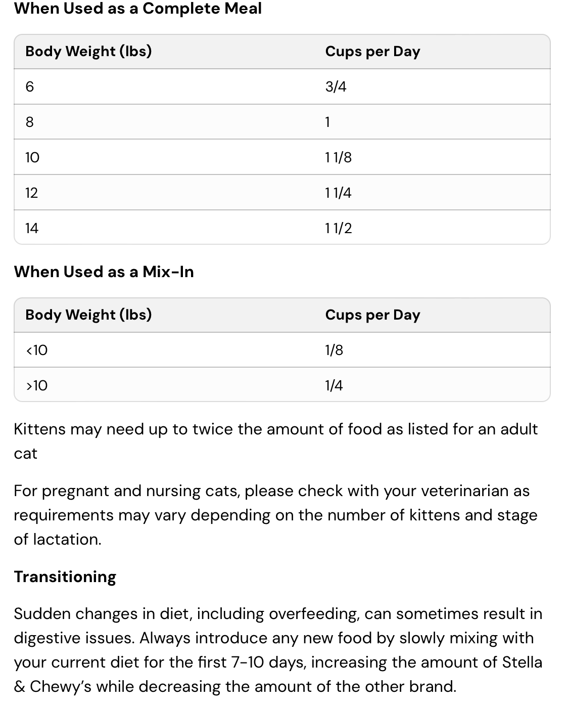 Our Stella Solutions for Cats are special and unique recipes that are a perfect way to add a boost of nutrition, raw power, and taste to your cat’s bowl! Each complete and balanced diet includes purposeful ingredients at meaningful levels that safely and effectively support your cat’s overall well-being. Add Dinner Mixers as a topper to your cats kibble for a boost or feed as a full meal.