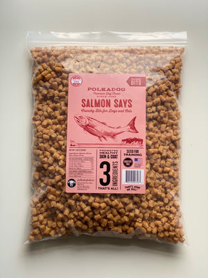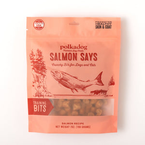 Feed your furry friend a treat that’s just as delicious as it is nutritious with Polkadog Salmon Says Training bits Crunchy Dehydrated Dog & Cat Treats. These scrumptious rewards are made with only three ingredients—salmon, brown rice and potato flour. The salmon is slowly dehydrated, delivering a satisfying texture and it’s naturally rich in omega fatty acids to support healthy skin and a lustrous coat. And you can have peace of mind knowing that these treats are made without additives or preservatives!