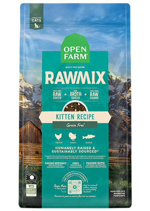 RawMix features our protein-packed kibble covered in a nutritious bone broth and freeze dried raw coating, with added chunks of freeze dried raw. Crafted with a blend of 100% animal welfare certified chicken, turkey, and wild-caught salmon, this irresistible recipe includes nutrient-dense meat, organ, and bone. This recipe is packed with natural nutrition tailored for kittens including natural DHA to support health brain and eye development.