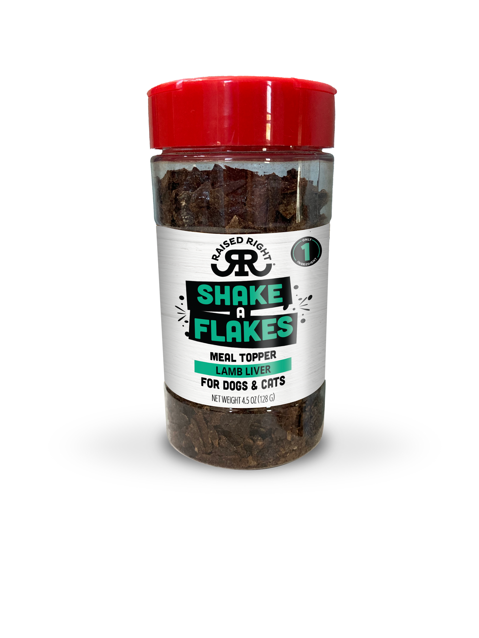 Raised Right Shake A Flakes Lamb Liver Dog & Cat Meal Topper