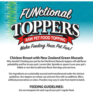 Why shouldn’t feeding your pet be fun! Northwest Naturals toppers will add flavor palatability and fun to your pets’ current diet. Sprinkle or spoon it over your pet‘s kibble or raw diet to add extra flavor that dogs and cats love.