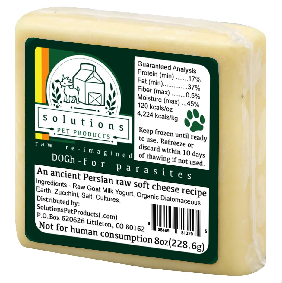 Solutions Pet Products DOGh Frozen Raw Goat Cheese with Diatamaceous Earth for Dogs and Cats