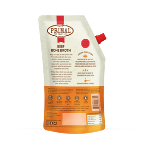 Add vital hydration to your dog or cat’s diet with our Beef Bone Broth. Just pour over your pet’s favorite frozen or freeze-dried raw recipe, kibble, or wet food to add beneficial nutrients that support digestion and joint and liver health. Made from grass-fed beef and features gelatin to support your pet’s intestines and help maintain a healthy gut. In addition, organic turmeric serves as a natural anti-inflammatory, antioxidant, and detoxifier. Available in an easy-to-pour 20-ounce resealable pouch.