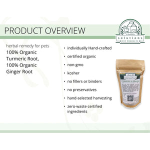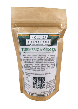 Turmeric’s primary active constituents are called curcuminoids which are made up to 2,000% more bio-available when combined with Ginger or Black Pepper (we didn’t think many dogs or cats would like Black Pepper so we used Ginger).