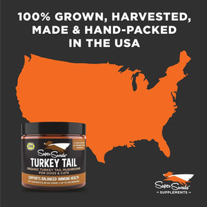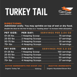 Super Snouts Turkey Tail Powder Immune Supplement for Dogs & Cats is the paw-fect solution for pets experiencing discomfort due to aging or seasonal and skin allergies. Crafted in the USA, this daily supplement supports immune and cellular health while helping to decrease oxidative and free radical damage. It helps maintain a healthy immune system response and cell function, promoting overall health and vitality. Give your furry friend a scoop a day to support their performance and endurance, keeping them in top condition.