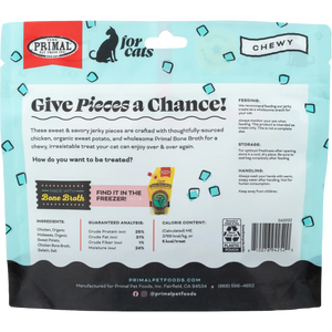 These sweet & savory jerky pieces are crafted with thoughtfully-sourced chicken, organic sweet potato, and wholesome Primal Bone Broth for a chewy, irresistible treat your cat can enjoy over & over again.