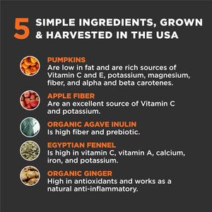 Pumpkin, Apple Pectin, Organic Fennel Seed, Ginger and Orgaic Agave Insulin
