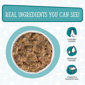 Your kitty loves hanging out in the kitchen, so give him the home-cooked flavor he craves with the Weruva Cats in the Kitchen Funk In The Trunk Chicken in Pumpkin Consomme Grain-Free Canned Cat Food. Made with lean chicken breast and wholesome pumpkin as the top ingredients, every bite is loaded with the meat your little carnivore craves, and all the protein he needs for healthy muscles. Since it’s formulated with a perfectly-balanced blend of vitamins, minerals and heart-healthy taurine, every easy-open can is actually a complete meal—on its own or as a tasty kibble topper. So open a can, serve up and bring on all that quality time in the kitchen!