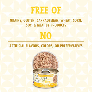 Give your purring pal the nutrition she needs with Weruva Cats in the Kitchen for Kitten Kitten Frick 'A Zee Grain-Free Wet Cat Food! This all-natural, limited ingredient wet food is purr-pared with cage-free shredded chicken in a delectable au jus. It features a unique recipe that’s low in carbs and high in hydration. It’s also free from grains, gluten, carrageenan, corn, wheat, soy, and artificial colors and preservatives. Even the most finicky feline will me-wow at the irresistible taste, and you can rest easy knowing you’re giving her a fur-esh, high-quality meal!