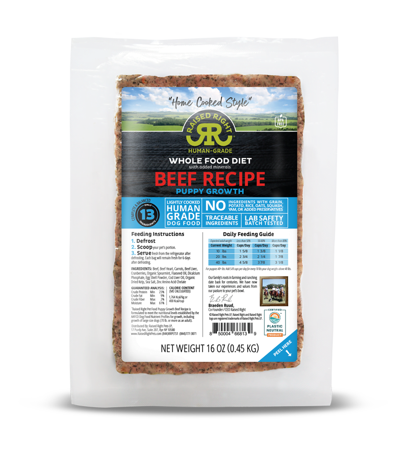 Raised Right Lightly Cooked Puppy Growth Chicken Frozen Dog Food