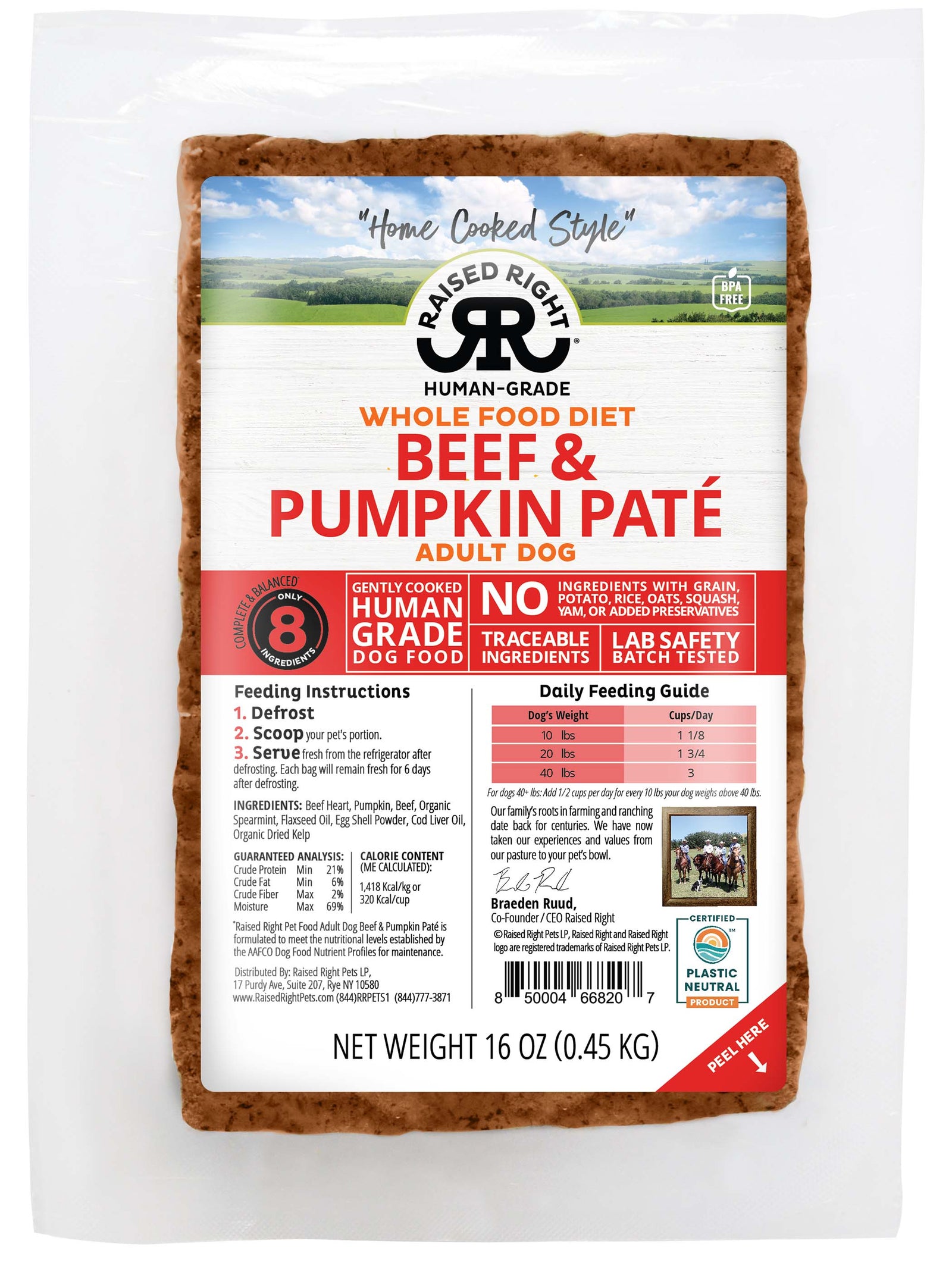 Raised Right Lightly Cooked Beef & Pumpkin Paté Frozen Dog Food
