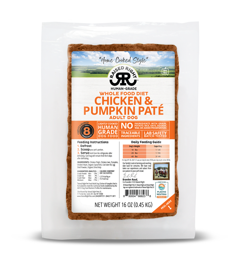 Raised Right Lightly Cooked Chicken & Pumpkin Paté Frozen Dog Food