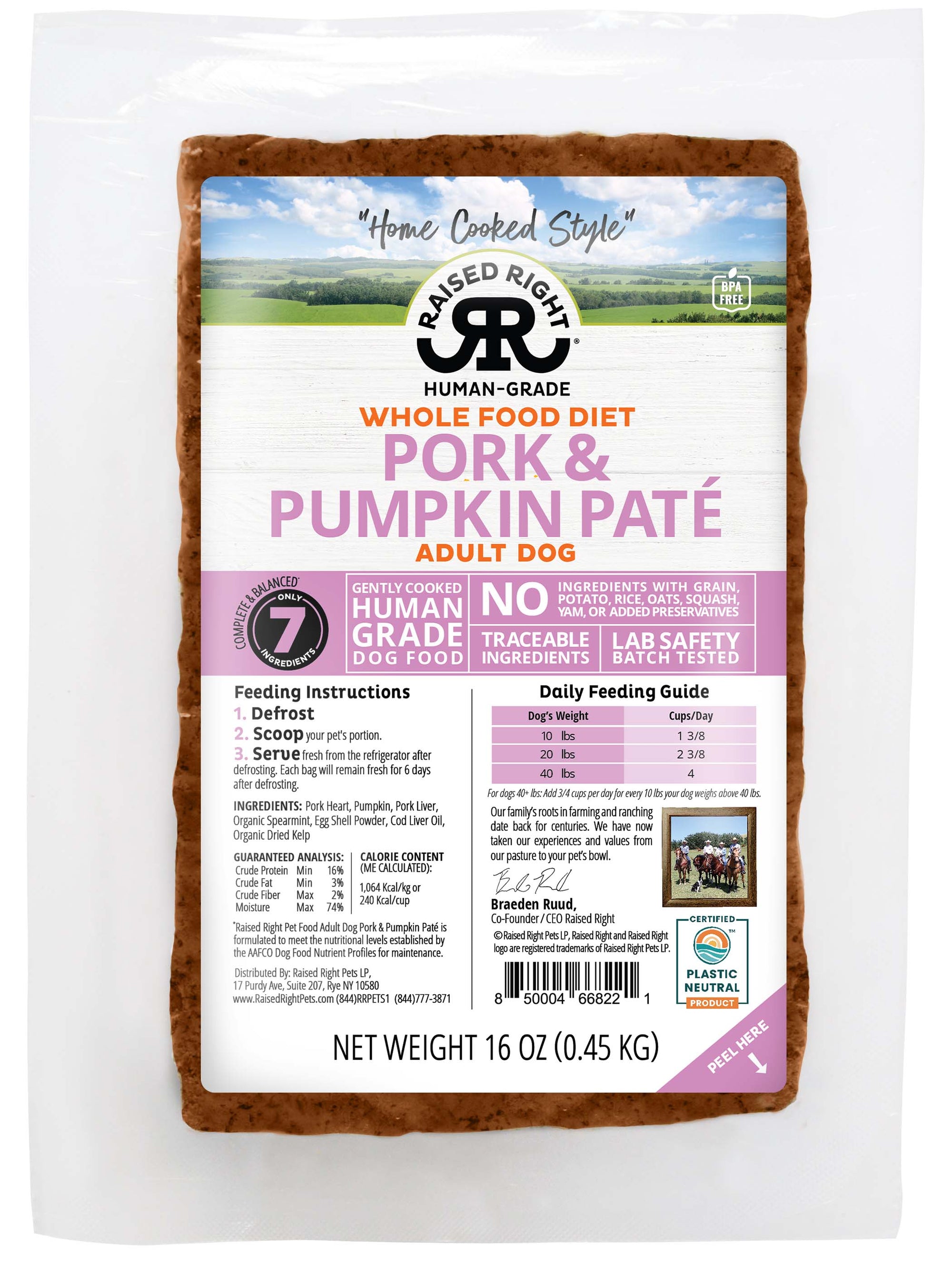 Raised Right Lightly Cooked Pork & Pumpkin Frozen Dog Food