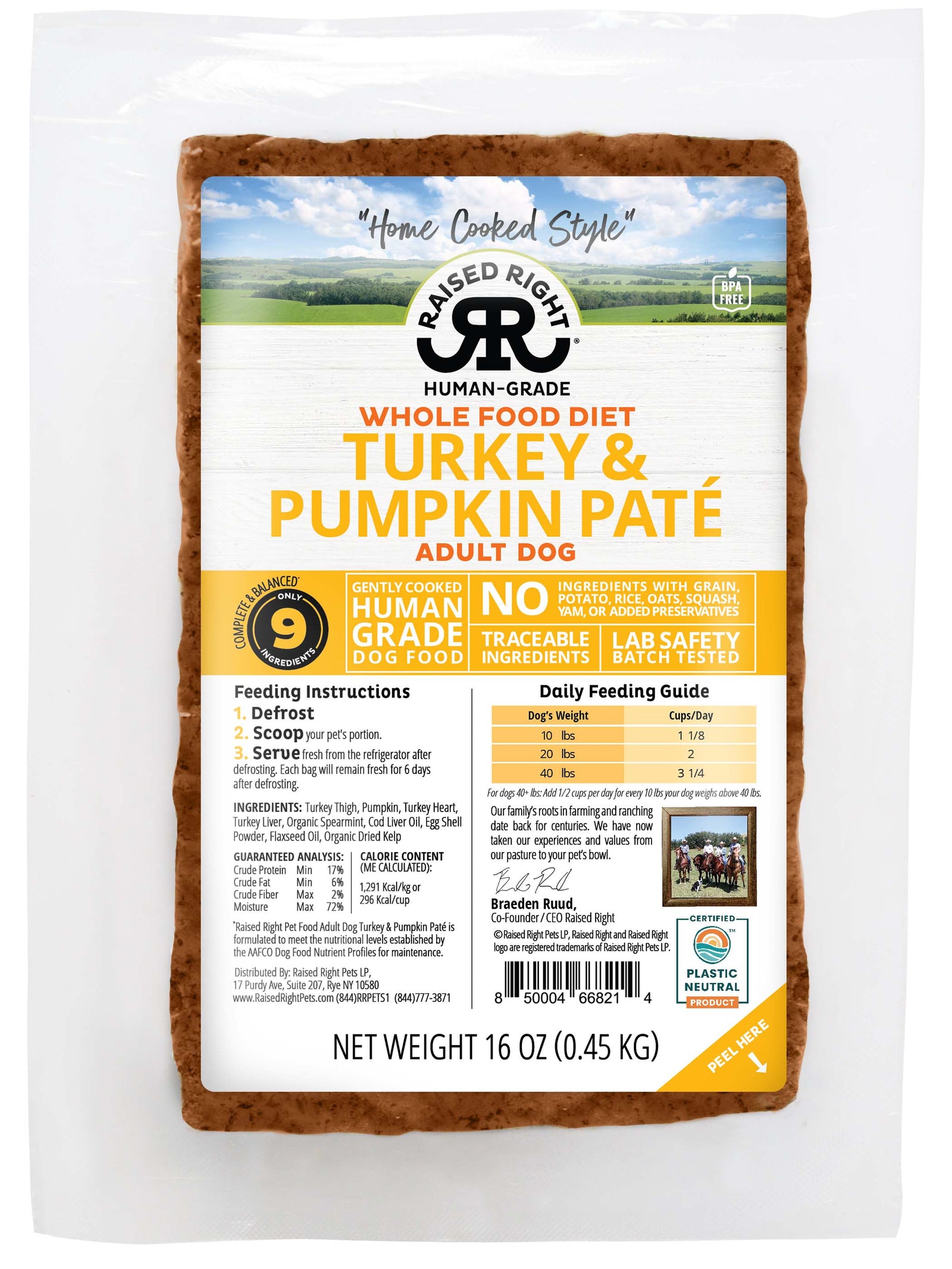 Raised Right Lightly Cooked Turkey & Pumpkin Paté Frozen Dog Food