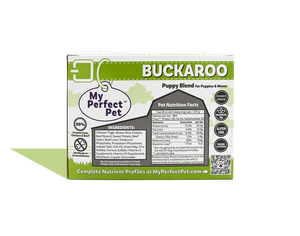 Buckaroo Puppy Blend is 100% nutritionally complete and balanced for moms and puppies from early weaning to adulthood. Buckaroo Puppy Blend is formulated to meet the nutritional levels established by the AAFCO Dog Food Nutrient Profiles for Gestation, Lactation, and Growth.