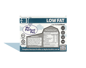 Low Fat Cod Blend for adult dogs is formulated to be lower in Fat than recommended in the AAFCO Nutrient Profiles For Dogs. Low Fat Cod Blend is recommended by veterinarians for dogs needing a restricted fat diet. Just because the diet needs to be lower in fat doesn’t mean it has to be lower in flavor – dogs naturally love the taste of freshly baked Cod blended with fresh whole foods. Because it does not meet the AAFCO standard for fat, it is labeled for intermittent feeding only unless recommended by a veterinarian. Because this blend is so low in fat it is also lower in calories, be sure to review feeding instructions with your veterinarian as your dog may require more than the recommended feeding amount.